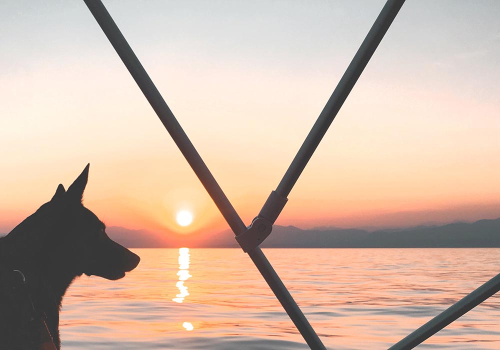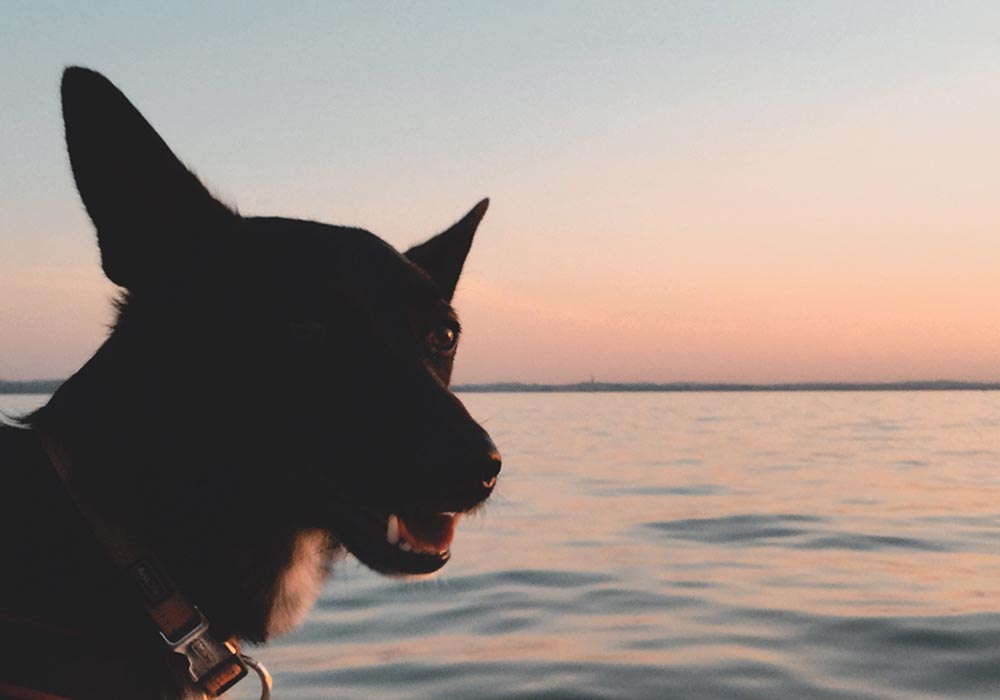 Ein Mudi am Gardasee.